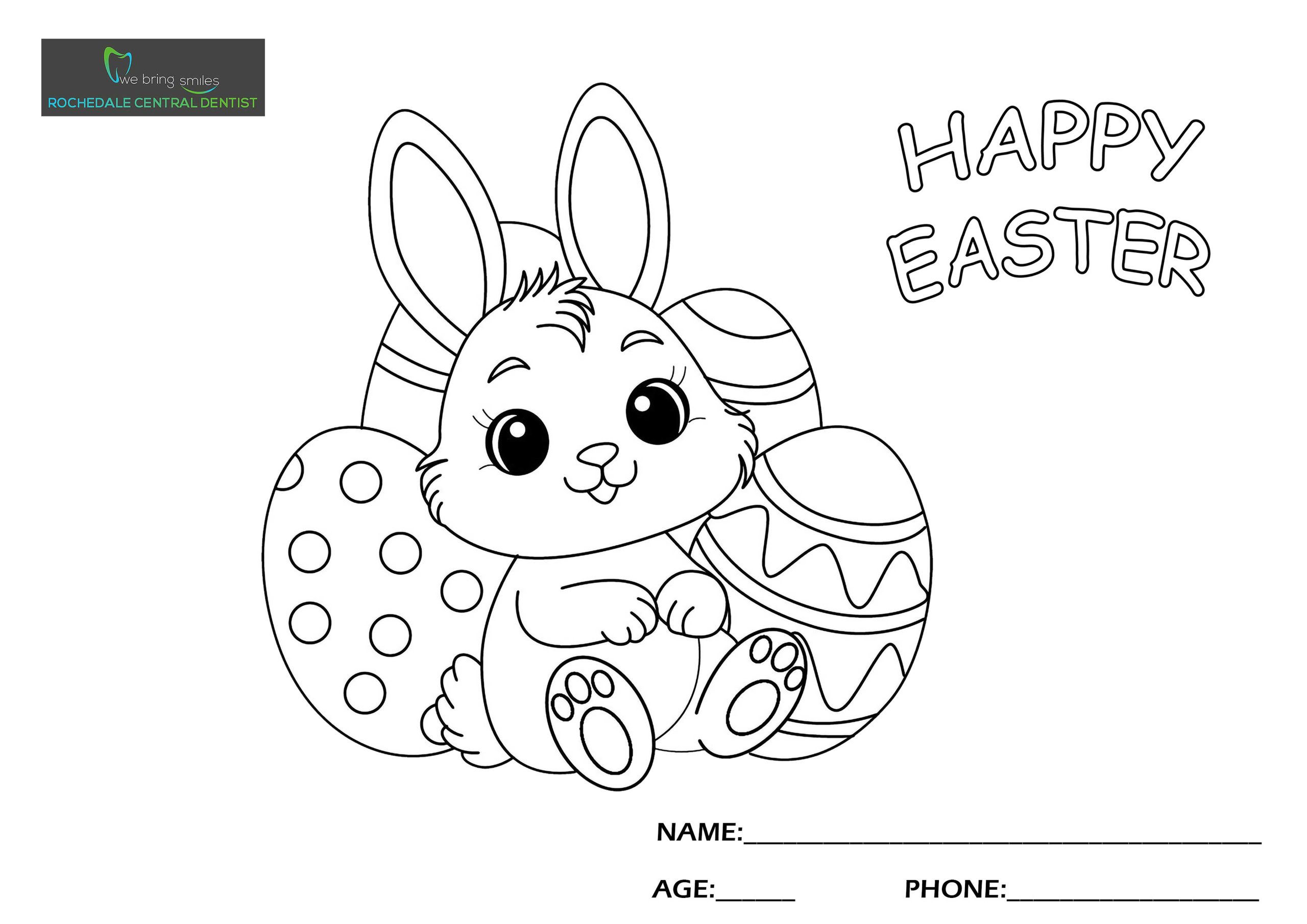 Please download and print the colouring sheet below. We are holding a colouring competition for children age 12 and under. Starting on the 5th April, 2025 and ending on the 17th April, 2025. The winner gets a prize worth $50 and the entry published in our Facebook Page (https://www.facebook.com/rochedalecentraldentist)